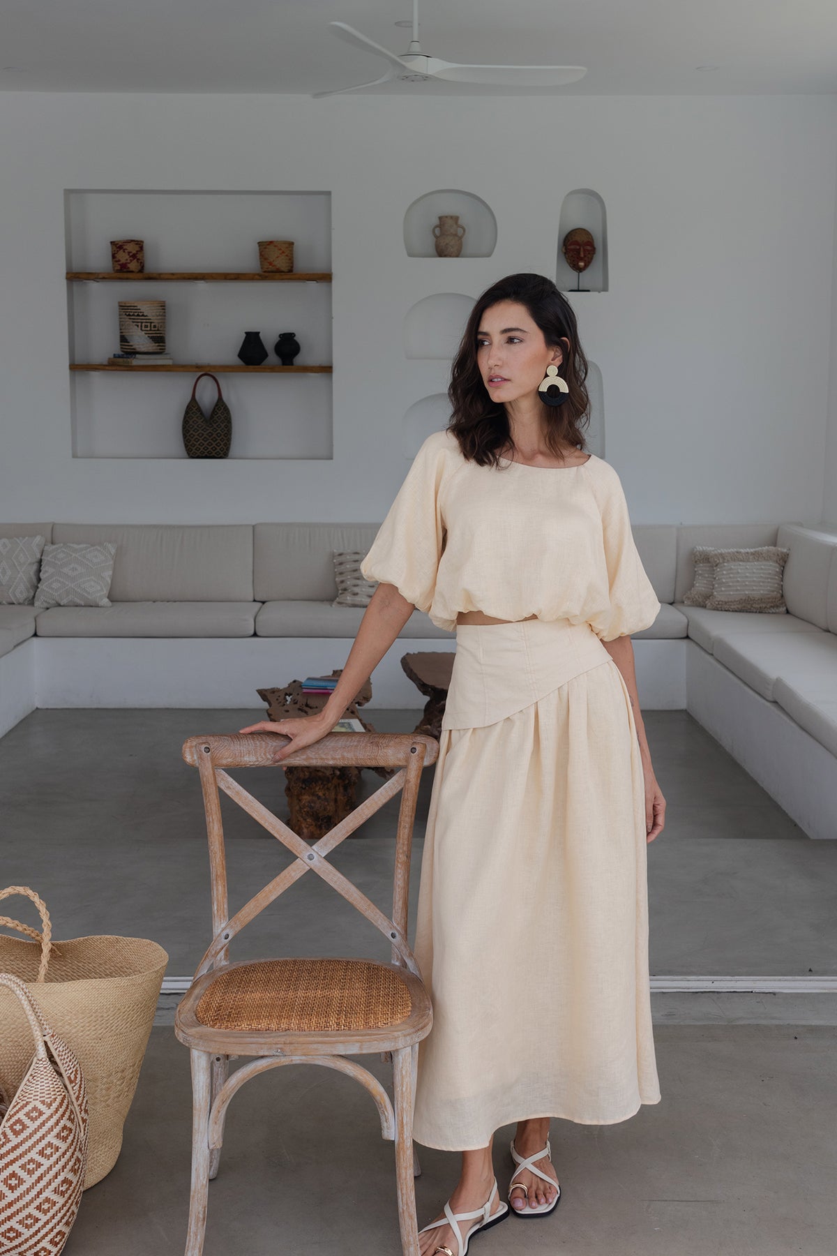The Titha Crop Top brings together freshness and romance in a lightweight, breathable linen design. Its voluminous silhouette and puff sleeves create a relaxed yet sophisticated look, perfect for warm-weather days.